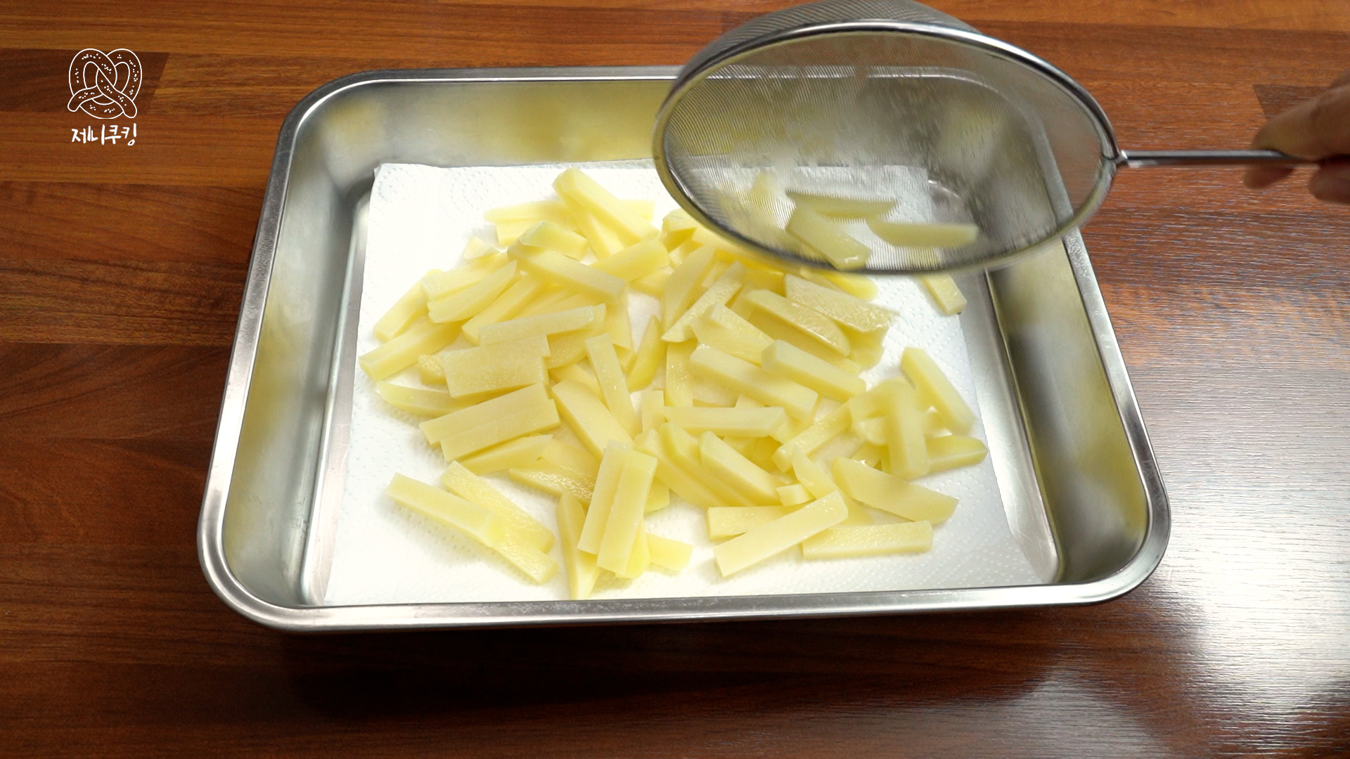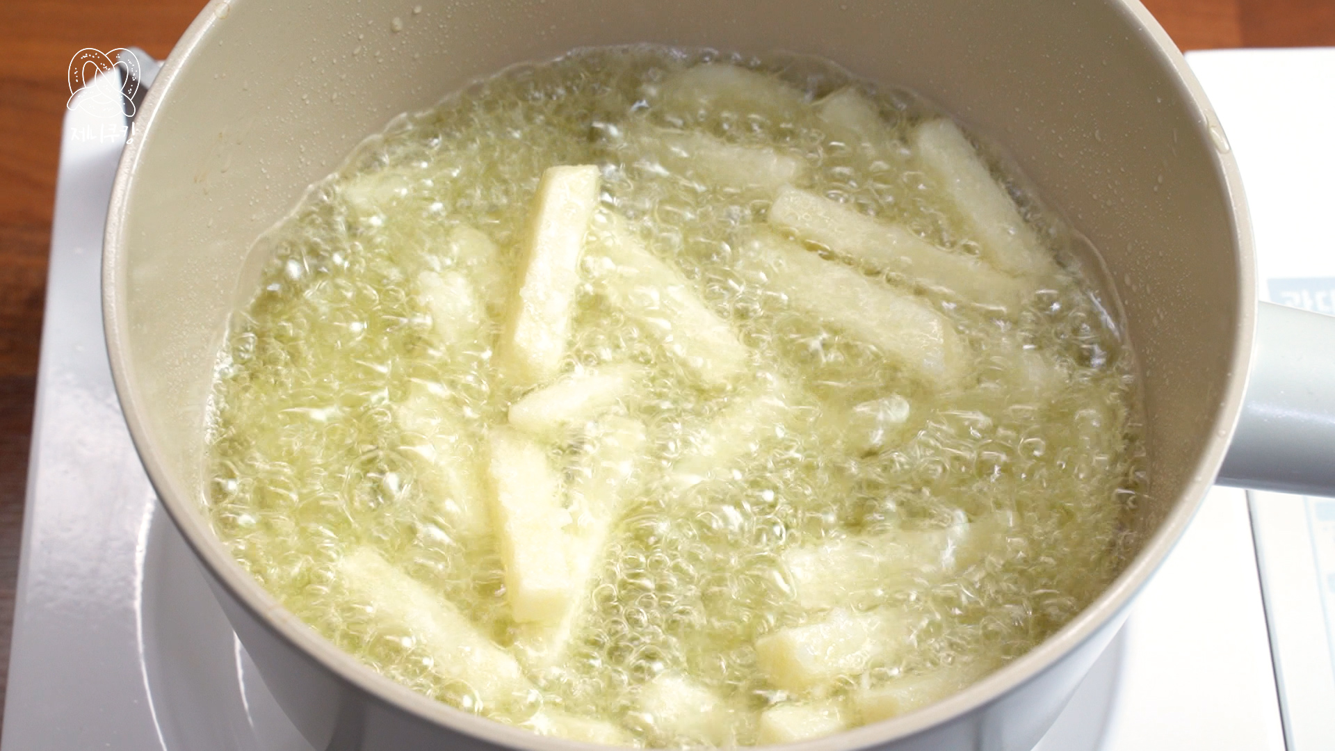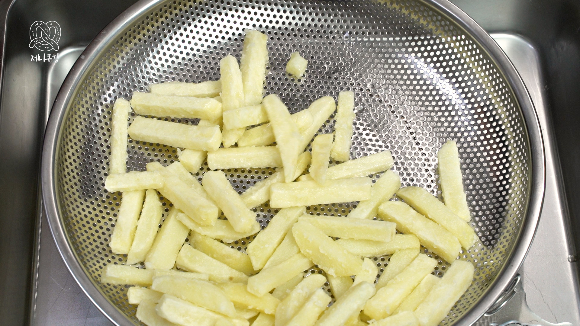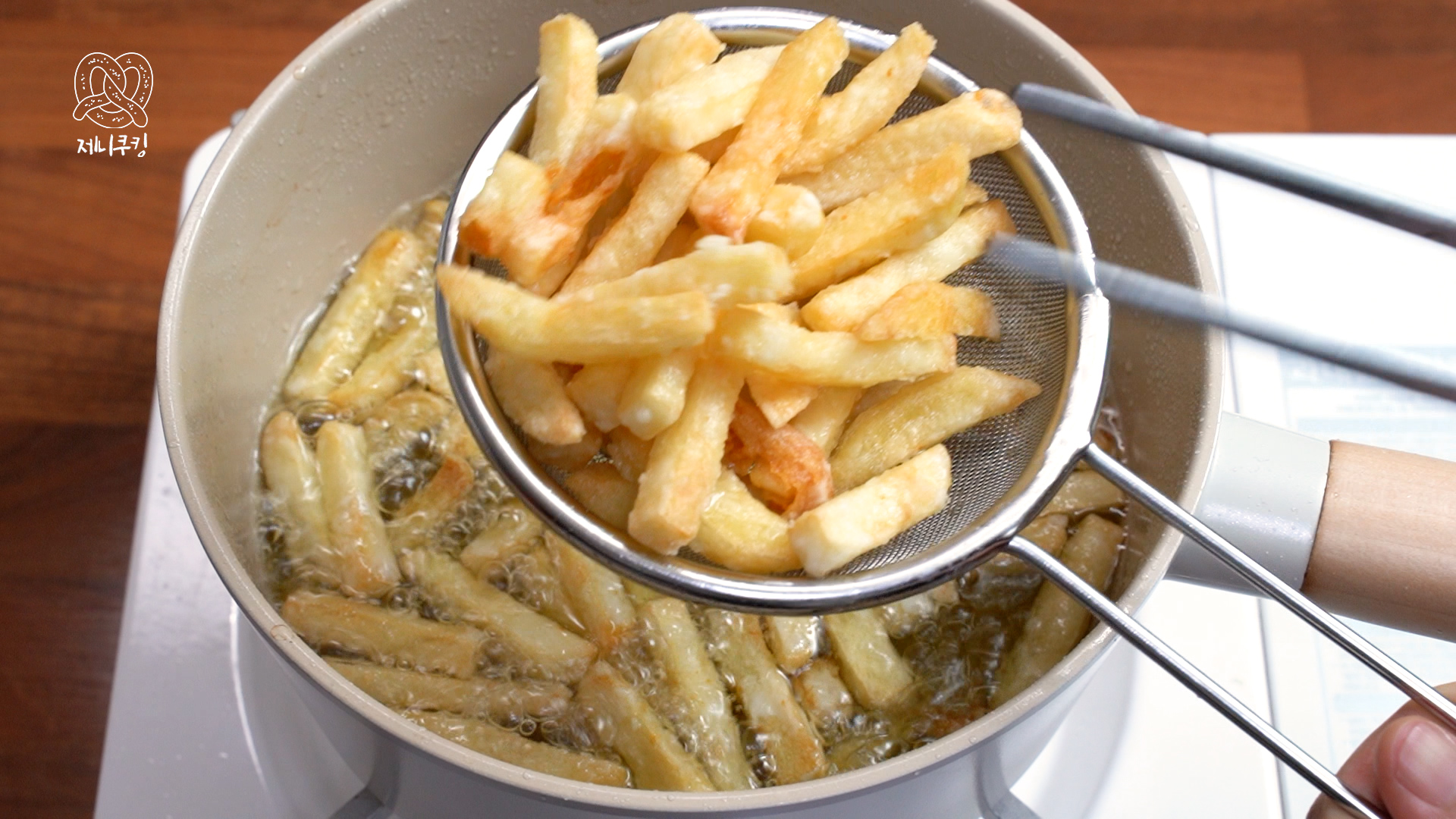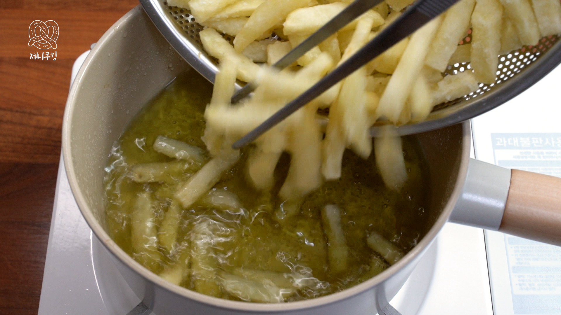 4. 한 번 더 튀긴다. 노르스름해지면 감자튀김 완성