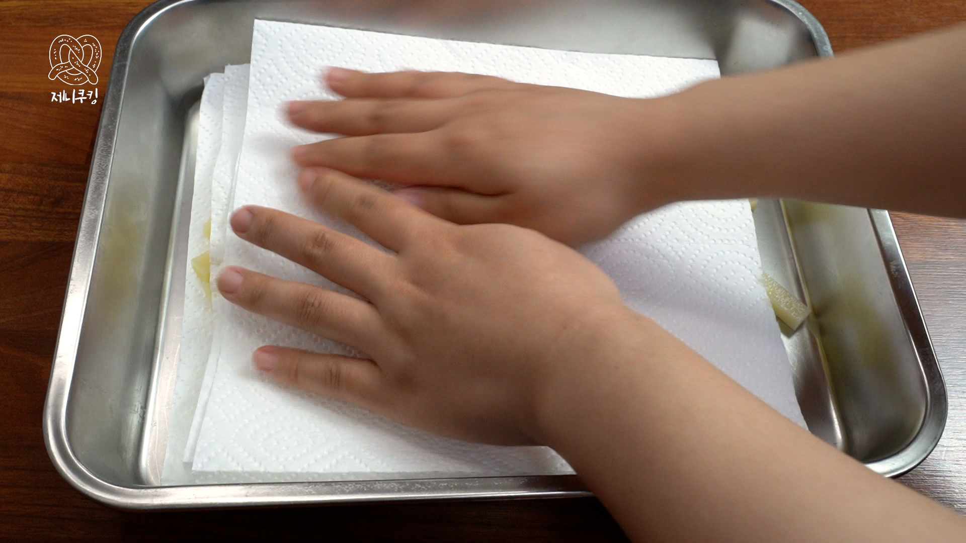 < 감자칩 만들기 > 감자칩만들기 재료 감자 1개 식용유 소금 or 시즈닝 1. 감자를 얇게 썬다. 2. 물에 헹궈 감자의 전분기를 뺀다. 3. 감자의 물기를 제거한다 1) 도마에 펼친 뒤 키친타올로 물기 제