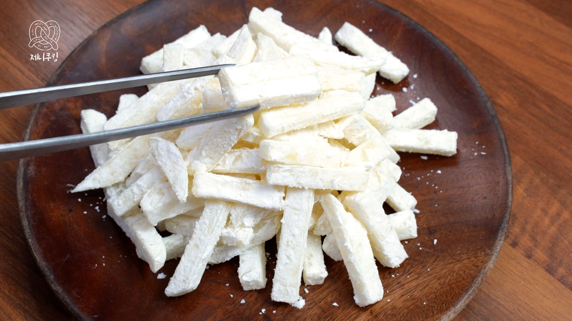 감자, 감자전분, 우유, 무염버터, 체다치즈, 스리라차소스, 튀김냄비, 튀김유