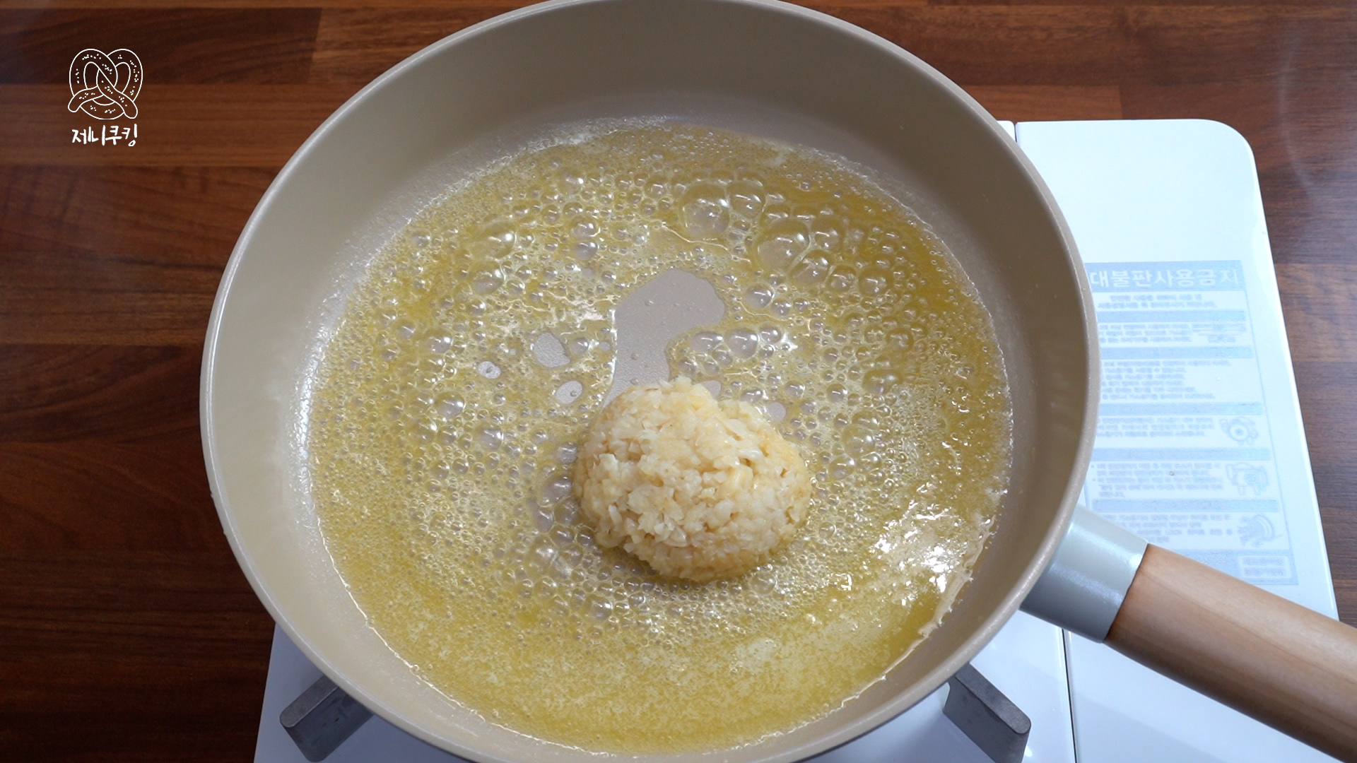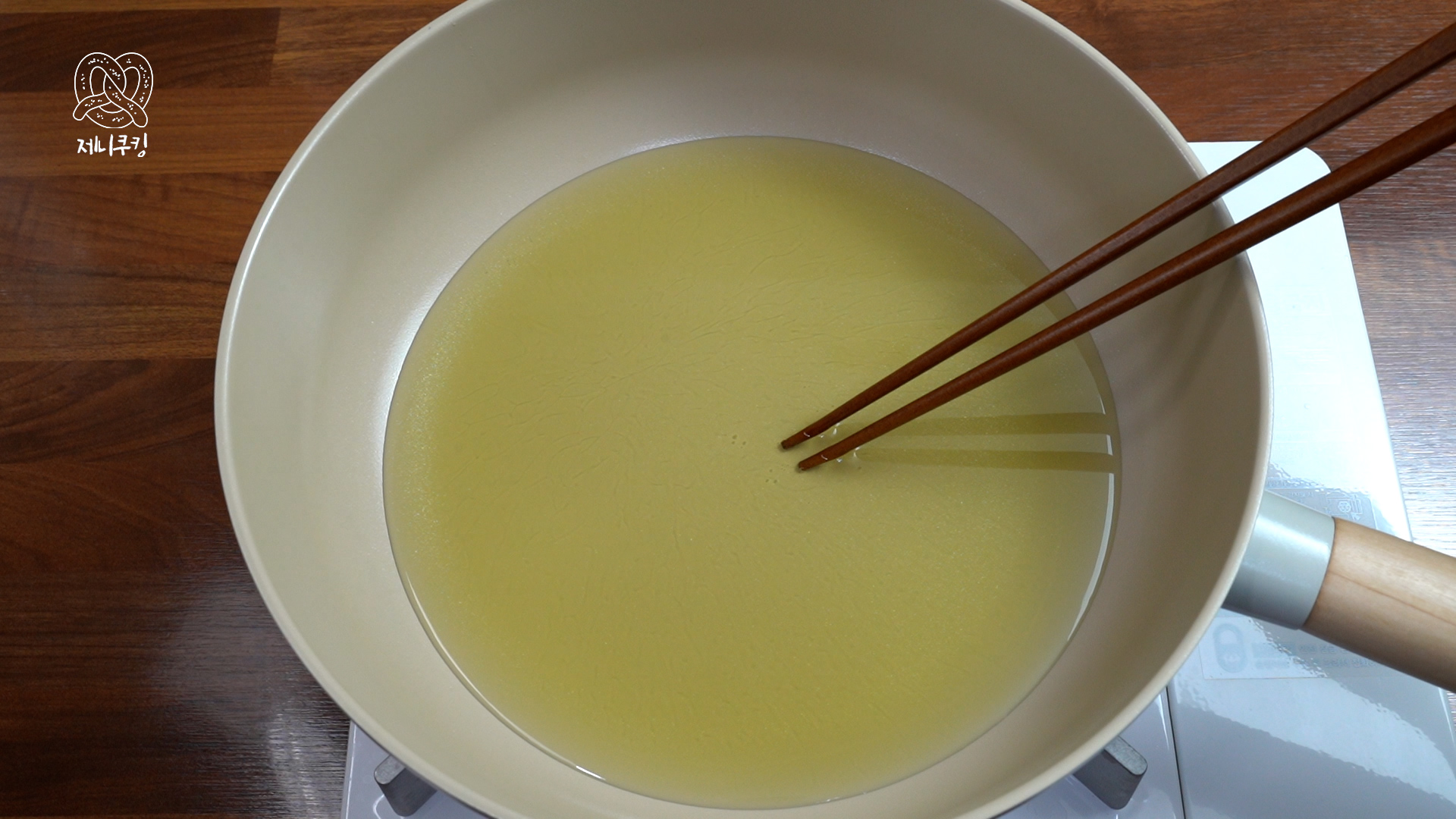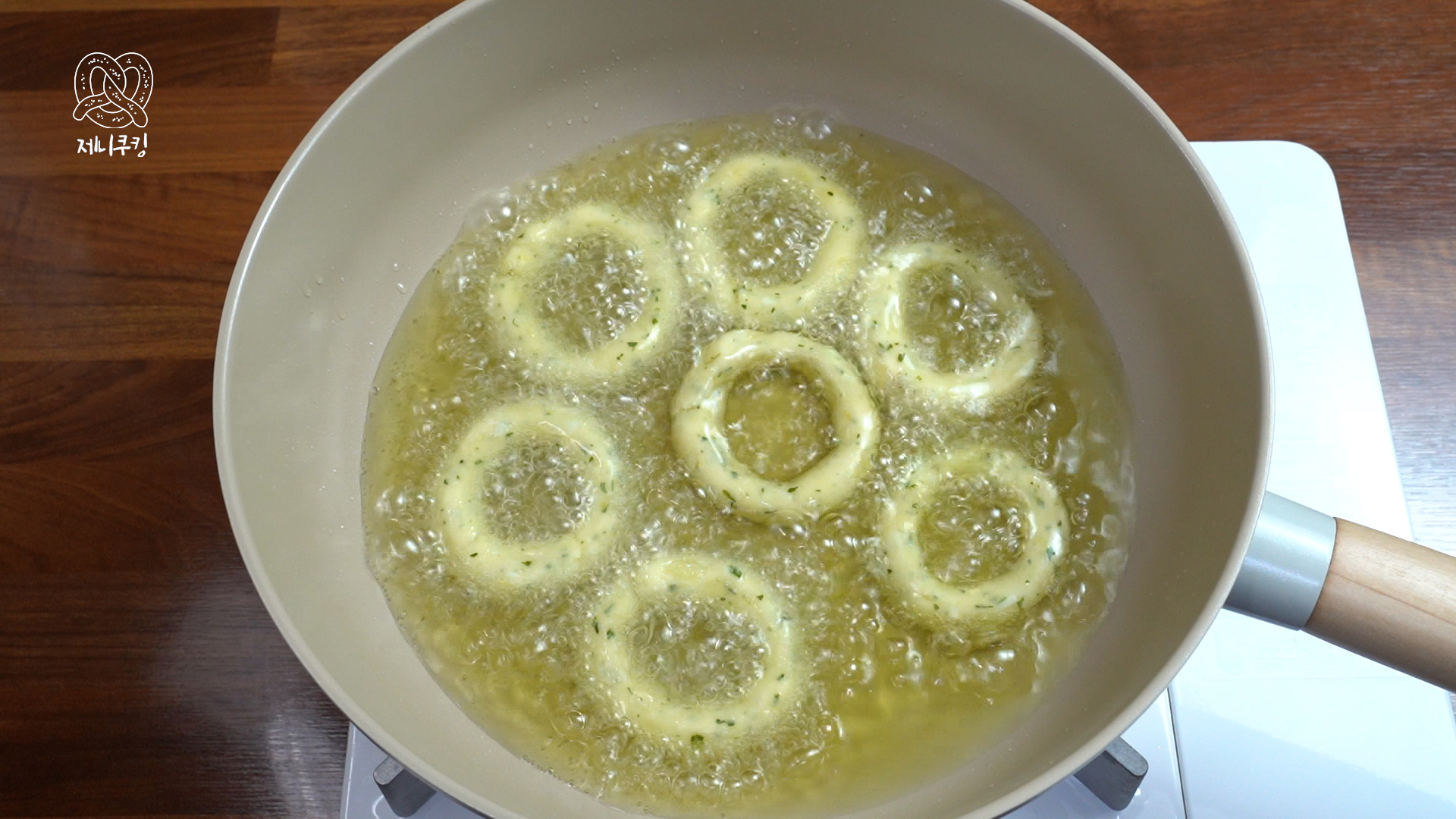 6. 튀김유 (포도씨유) 붓고 중불에서 앞뒤로 노릇하게 튀긴다.