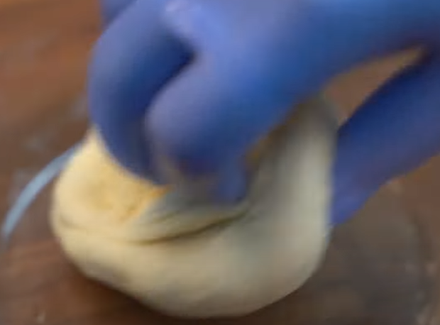 2. 반죽이 뭉쳐지기 시작하면 손반죽 한다. (5분)