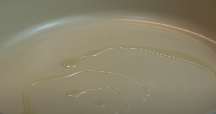 6. 프라이팬에 오일 두르고 약불로 노릇노릇하게 굽는다.