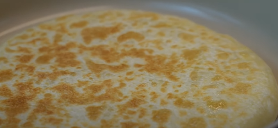 뒤 집기 전 반죽에 오일을 바르고 뒤집어 준다.