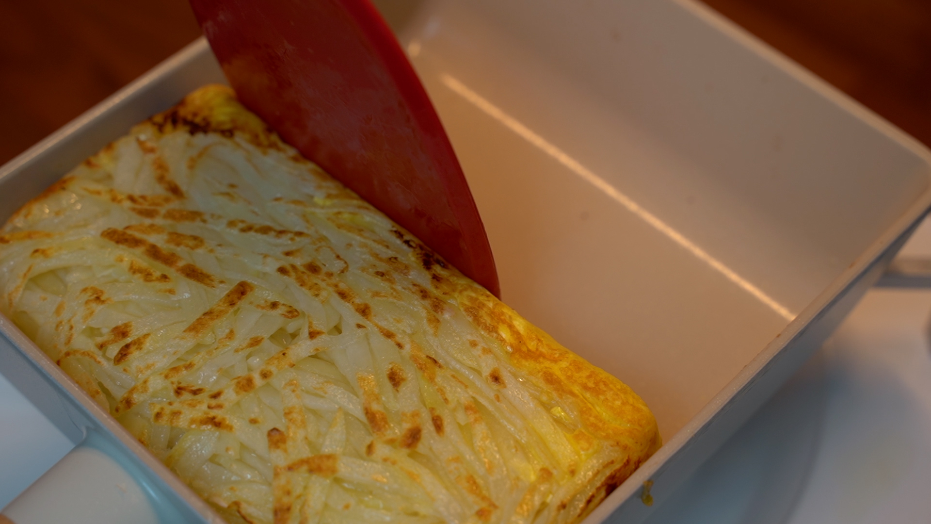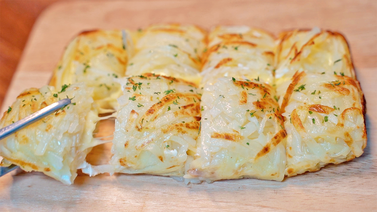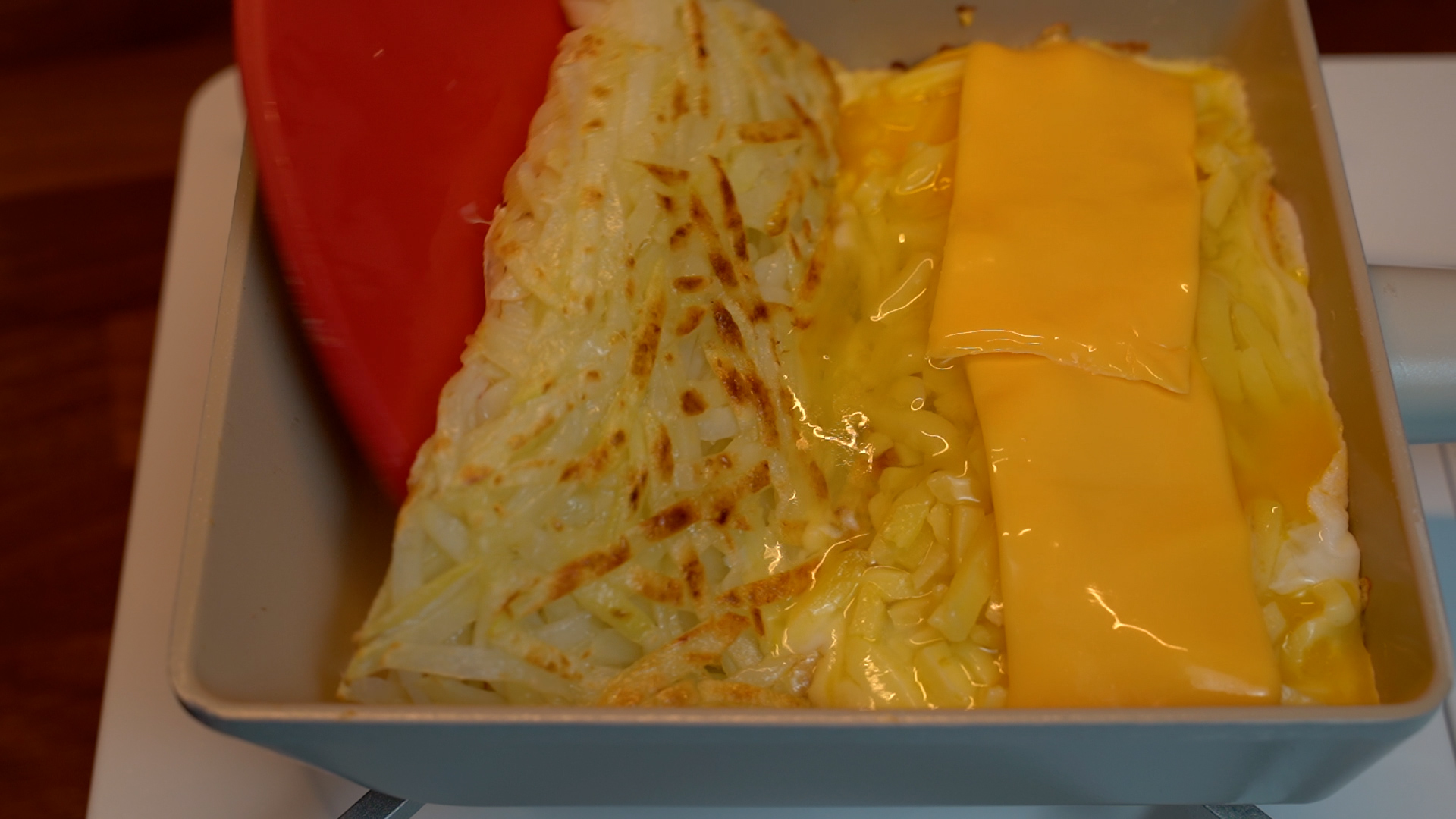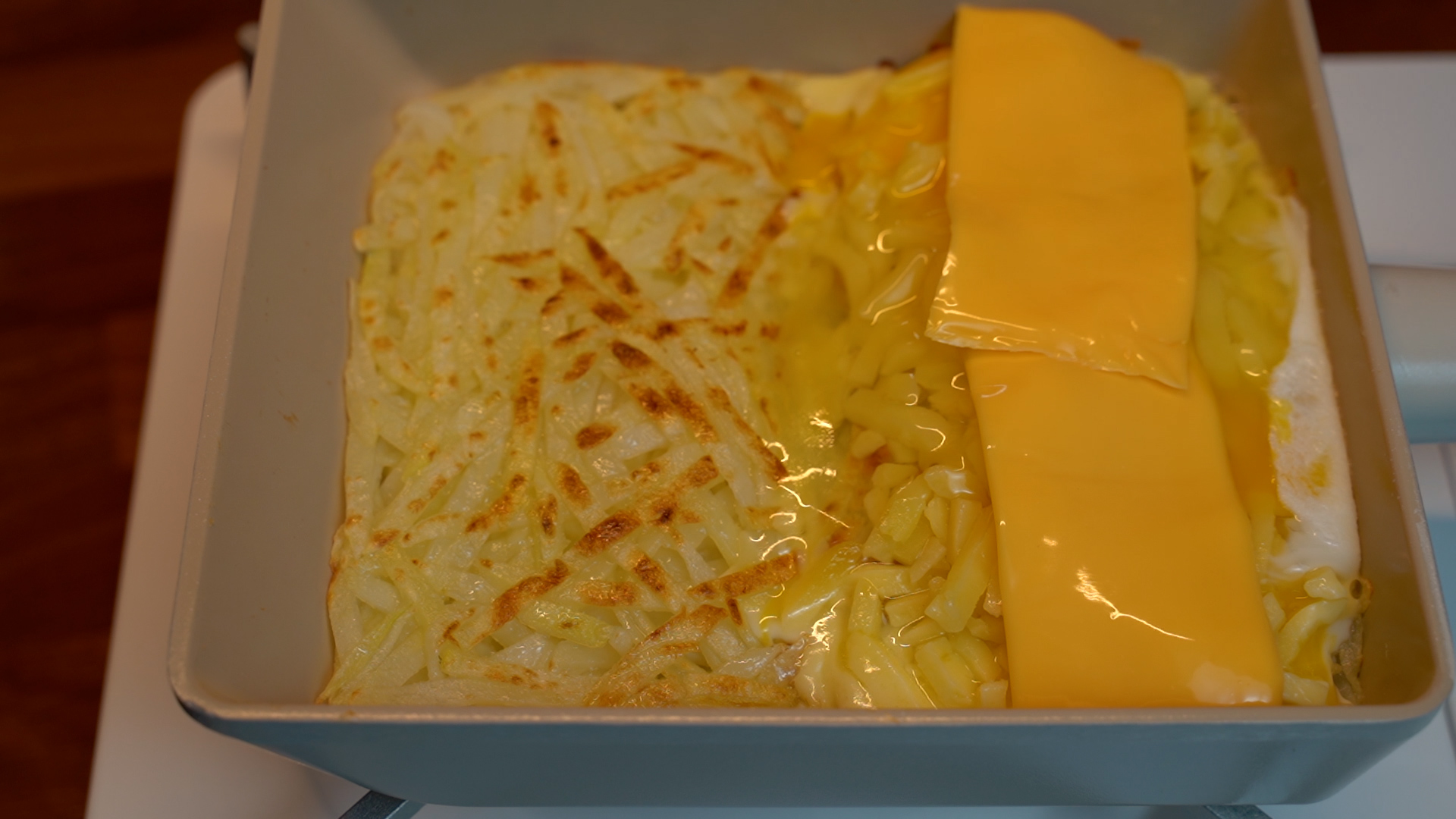 감자, 모차렐라치즈, 슬라이스 체다치즈, 계란, 네오플램 사각팬, 포도씨유